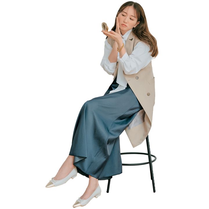 3. ボウタイブラウス+ジレできちんと感UP!春のオフィカジコーデ【着回しDiary】