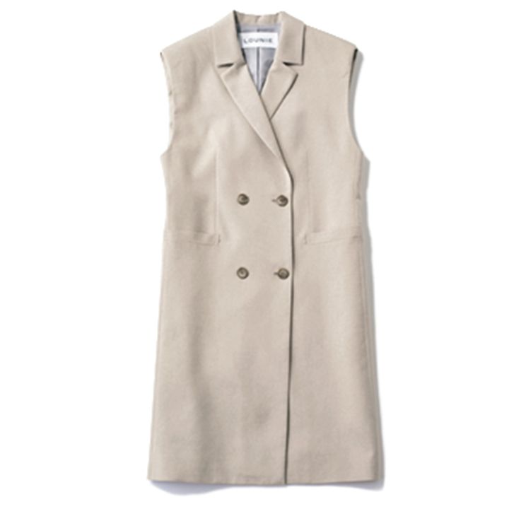 ノースリーブの軽快さとジャケットの正統派イメージを併せ持つジレ。今どきなボックスシルエットで、オフィカジにも相応しい、スマートな雰囲気を演出。ジレ¥35,200(ルーニィ)