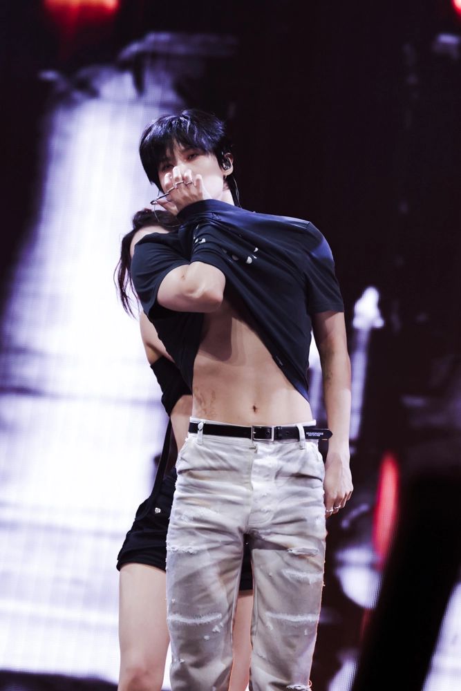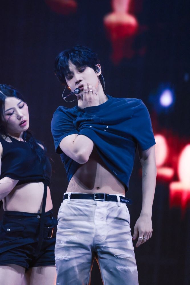 圧巻の登場で会場を沸かせたTAEMINは、「Guilty」のサビで鍛え上げられた腹筋を披露。そのセクシーで大人な魅力に会場は大盛り上がりでした。
