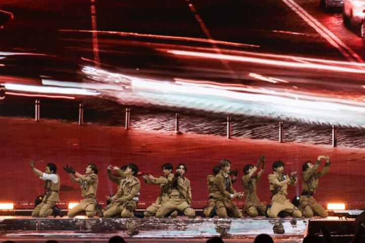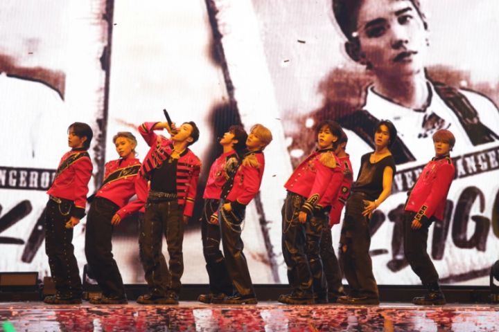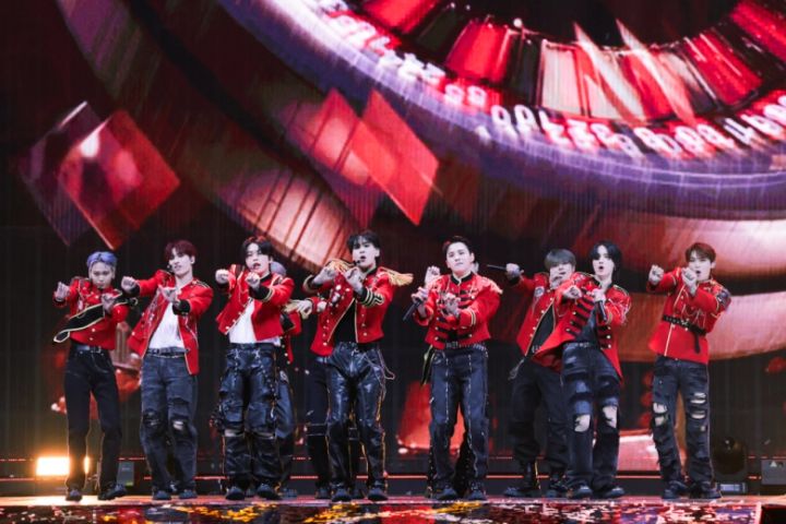 そんなStray Kidsは、ビルボード200で1位獲得したフルアルバム『★★★★★ (5-STAR) 』から「특 (S-Class)」や「Super Bowl」などの3曲を披露。