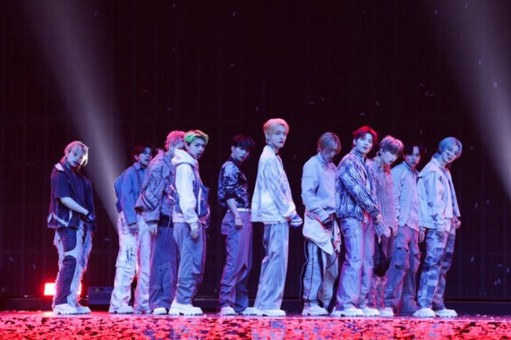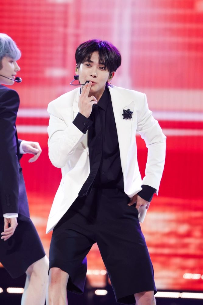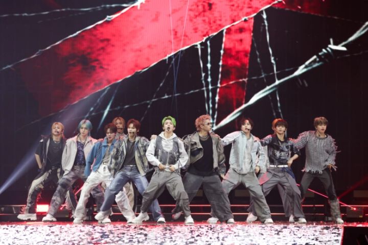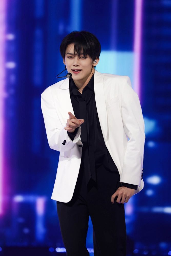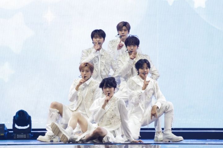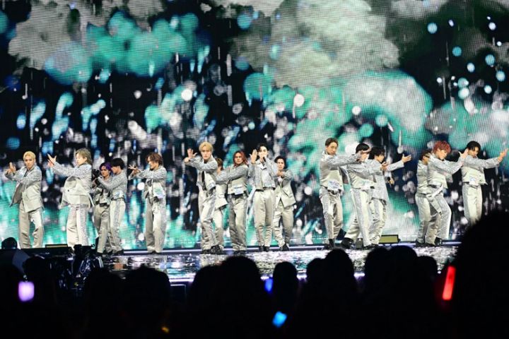 全身白の衣装を着こなし、登場したNCT WISH。2曲目の「WISH」ではポップな曲調にあわせて、息のあったダンスで披露しました。