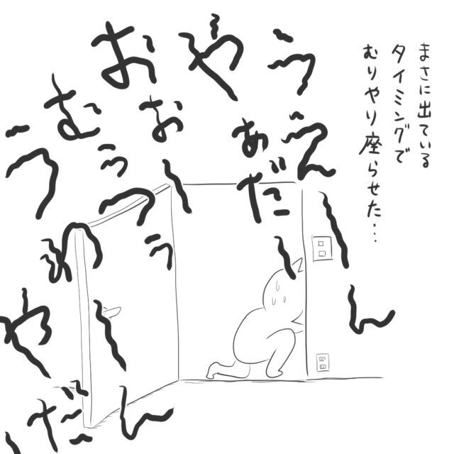 そう思ったマーミーさんはギャン泣きするこねたんを無理やりトイレに座らせました。