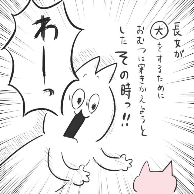 こねたんが大をするためにオムツに履き替えようとすると・・・