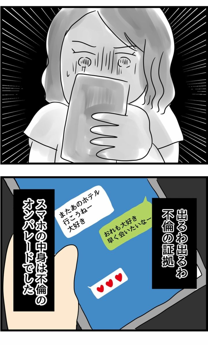 とても夫婦仲がよかった2人。ところがある日、イヤな予感と共に偶然夫のスマホを見たところ、不倫の証拠が次々と出てきます…。