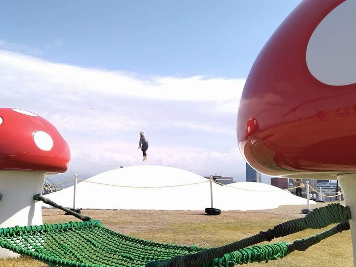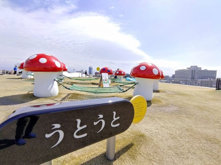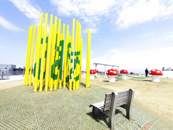 全部で8種類の遊具がそろっていますが、独特のフォルムをもっていてどれもフォトジェニック。屋上からは立山連峰も一望できる隠れた眺望スポットで、360度のパノラマビューを楽しめます。