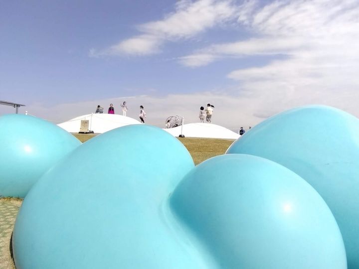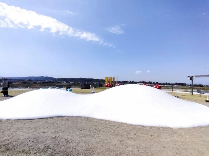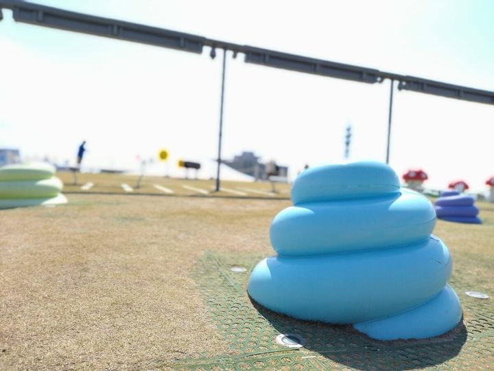 オノマトペ……? オノマトペとは、犬が「ワンワン」や星が「きらきら」などの擬音語や擬態語のこと。美術館の屋上らしく、そんなオノマトペからアプローチした遊具はオブジェのような魅惑の存在。
