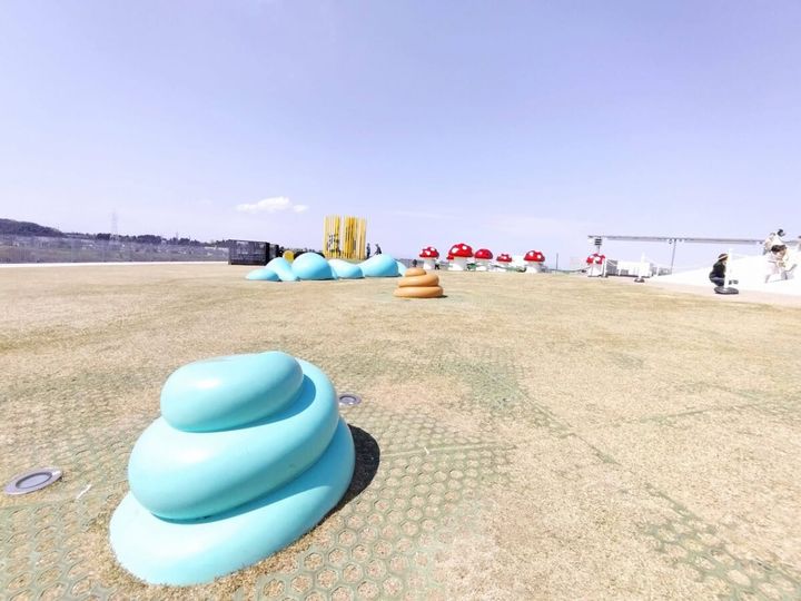 実は美術館の屋上は一面芝生で覆われ、おもしろみあふれる遊具がある「オノマトペの屋上」になっているんです。