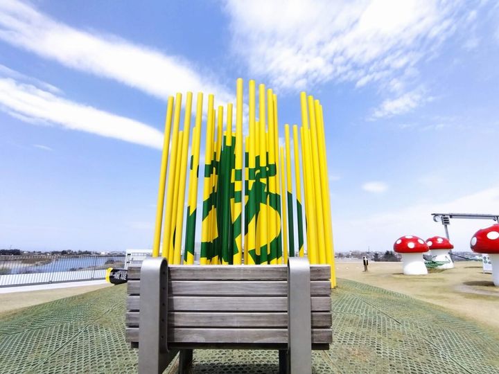 富山県美術館の屋上がスゴいことになってる! 無料で楽しめることに加え、フォトジェニックでオブジェのようなオノマトペ遊具がいっぱい! 美術館の屋上らしく知的好奇心を刺激する魅惑のルーフトップ広場なのです。富山駅北口から徒歩約15分、もしくは車で3分、環水公園内の穴場観光スポット、現地ルポでお伝えいたします。