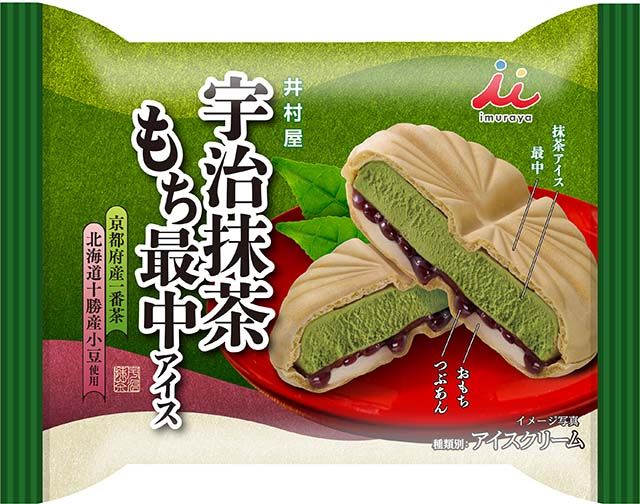 上記13種に加え、「宇治抹茶もち最中アイス」もラインナップにイン! 抹茶アイスとつぶあん、おもちのハーモニーを楽しめます。