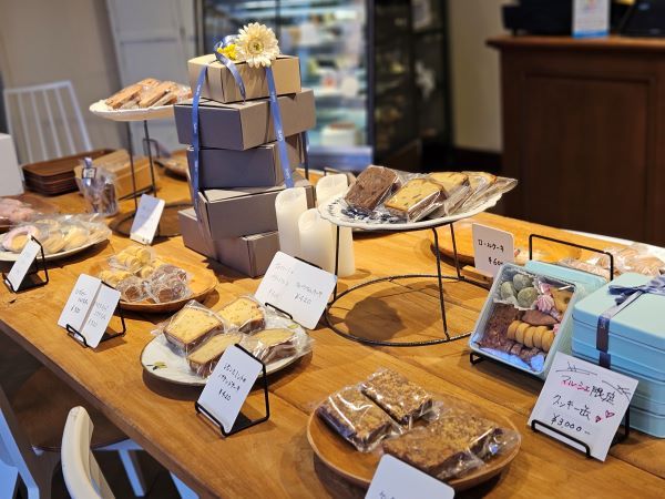 パティシエ自慢の焼き菓子や生ケーキが並びます。休日に素敵なおうちカフェタイムを楽しめますね。手土産としての利用もオススメします。