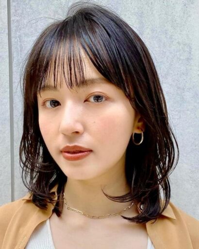 毛先の揺れ感でアンニュイな雰囲気を醸しつつ、そこにラフな前髪を合わせることで大人っぽい抜け感やフェミニンムードがさらに高まります。ふんわり感のあるシルエットを大切に、決めすぎずナチュラルに仕上げるのがポイントです。