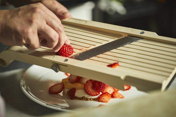 神戸からパティシエのキャリアをスタート。パリへ渡り、フランス菓子の現場で研鑽を積んだのち、日本の食文化について長い歴史を持つ京都へ。京都で開いた自身の店ではアシスタントを入れず、提供するすべてのデザートを素材の見極めから下ごしらえまですべて山本シェフが行います。だから全6席、1日3部制の完全予約制なのです。