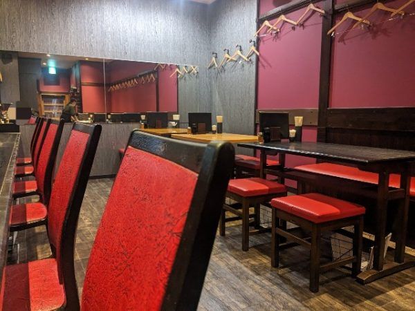 暖簾をくぐって扉を開けると…左手にカウンター席・右手にテーブル席が並んでいました。併せて30席(カウンター7席、テーブル5席、個室 1室)ほど。