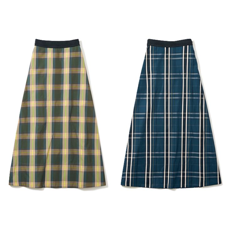 ハリのある大柄のチェック生地を採用し、スマートなシルエットに仕上げた今年らしい大人顔スカート。ウエスト後ろだけゴムを入れて、誰でもキレイにはけるようデザインしました。