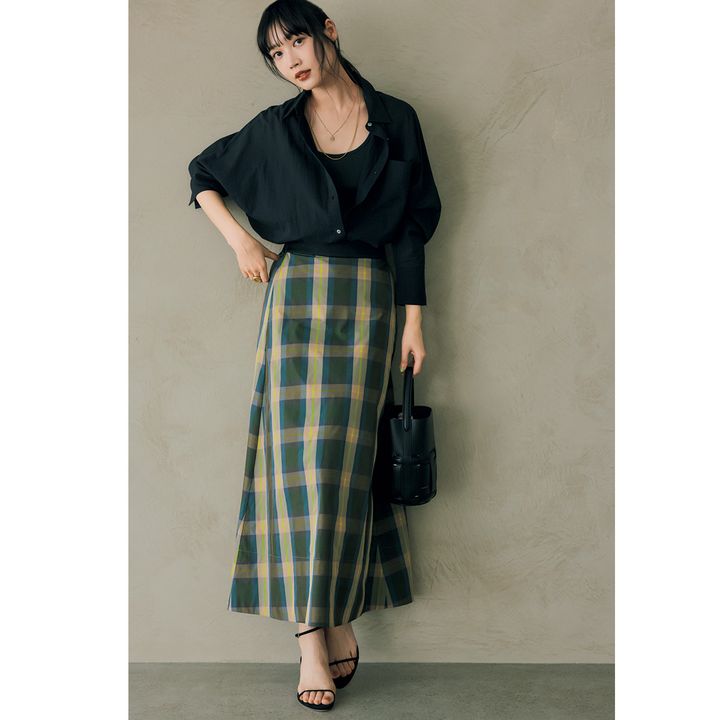[GREEN]新鮮な配色の大柄チェックがキャッチーな着映え感満点のスカート。いち早く取り入れて新シーズンのオシャレ気分を盛り上げて。チェック柄スカート¥19,800(スリースクエア)シャツ¥16,500(デミルクス ビームス/デミルクス ビームス 新宿)タンクトップ¥8,580(ティッカ)コインネックレス[短]¥16,500(マリハ) チェーンネックレス[長]¥7,700(チビ・ジュエルズ/チビジュエルズ・ジャパン)リング¥30,140(ソコ/ZUTTOHOLIC)サンダル¥59,400(ブレンテッラ/ビームス ハウス 丸の内)バッグ¥52,800(オルセット/オルサ)