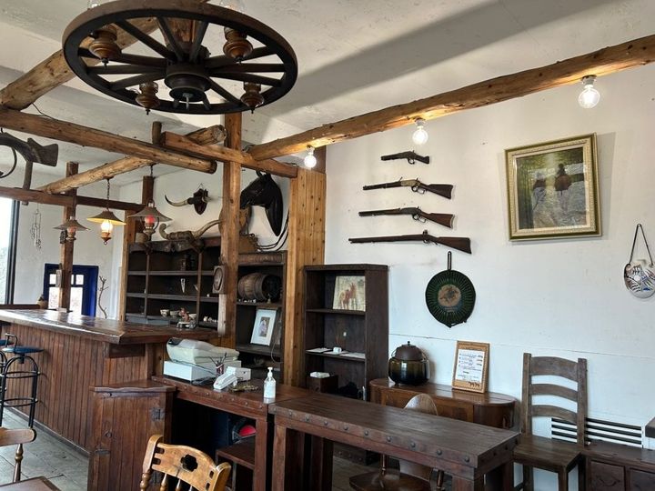 ウエスタン風の建物で、乗馬体験の受け付け。気分も盛り上がります。