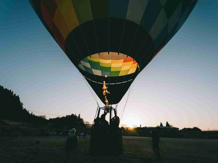 阿蘇のカルデラの全貌を知るには、空から眺めるのがいちばん。というわけで、人気なのが気球体験です。気球でのフライトは、朝日が昇る前から準備がスタート。早朝が一日のうちでいちばん風が穏やかな時間帯だからだそう。大きな気球が広げられ、ゴーッというバーナーの音とともにぐんぐんふくらんでいきます。ゴンドラに乗り込むとふわりと浮き上がって、ゆっくりと上昇し、上空40mへ。朝日に照らされる阿蘇のカルデラが、目の前に広がります。