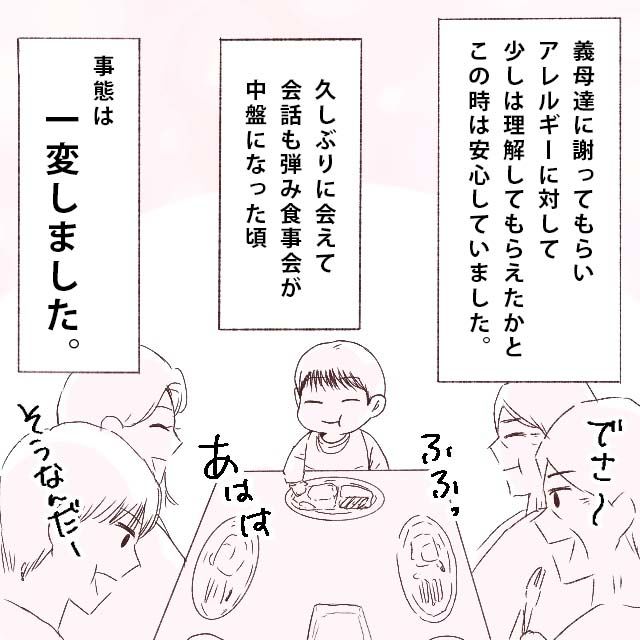 私は義両親からの謝罪の言葉を受け入れ、アレルギーに対しても少しは理解してもらえたような気がしてこの時は安心していました。