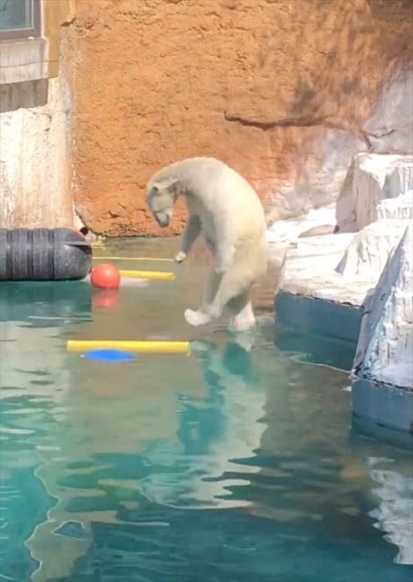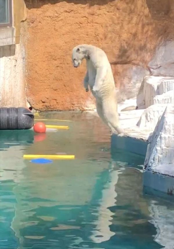 動物園の人気者・しろくまが見せた、まさかのジャイアントストライドエントリーが反響を呼んでいます!