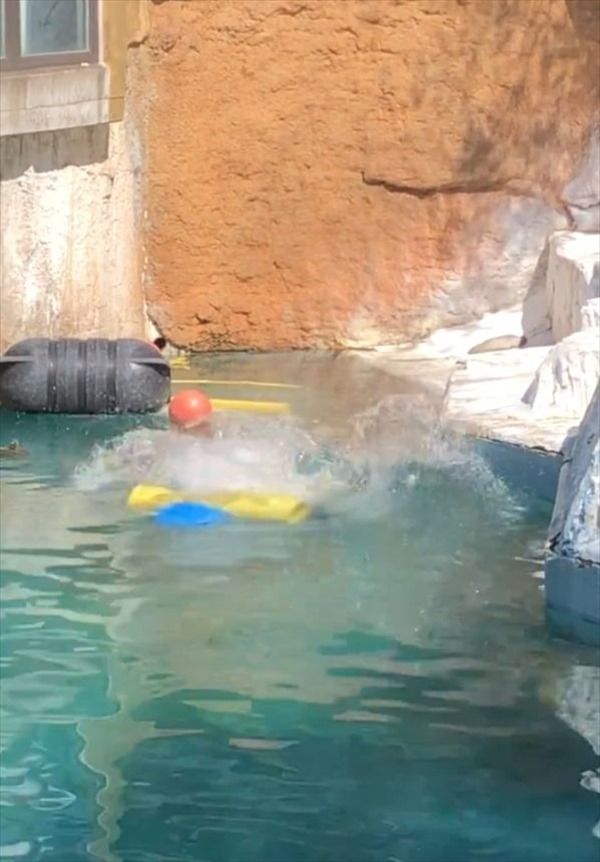 「ダイビングの入水みたい」「左足がかわいい」しろくまが見せたジャイアントストライドエントリーがかわいすぎる!