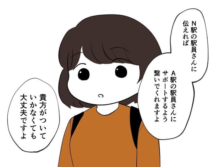 電話お願い手帳をもらうために市役所に行き、今までの経緯を説明したところ、市役所の職員の方から有益なアドバイスをもらうことができました。目的地の駅まで案内しなくても駅員さんに話をしておけば、サポートを受けられることがわかりました。これでようやく、男性から解放されそうです。