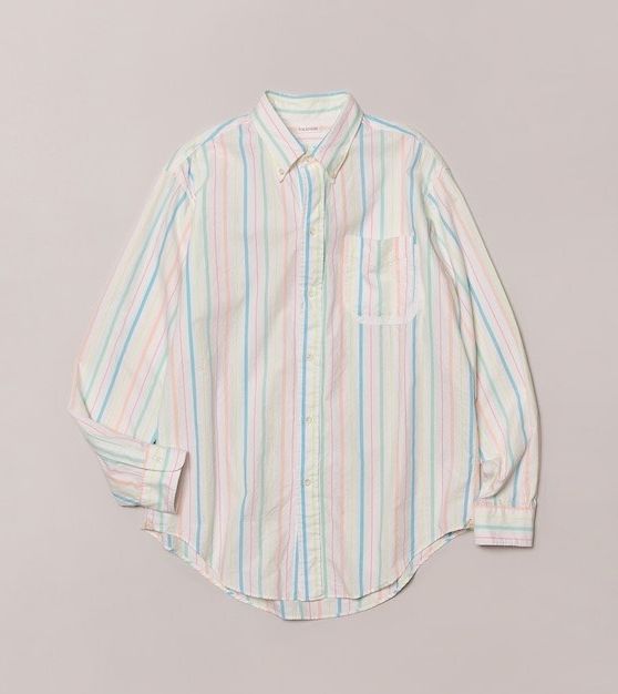 「蛍光ストライプのシャツもパンツもメンズ。以前ワガママ トウキョウで購入し、パンツはウエストと丈をお直してもらいました。この日は友人と花見の予定があったため、シャツを主役に春らしい爽やかな気分で合わせました。シャツはインしてバランスアップを意識しています」