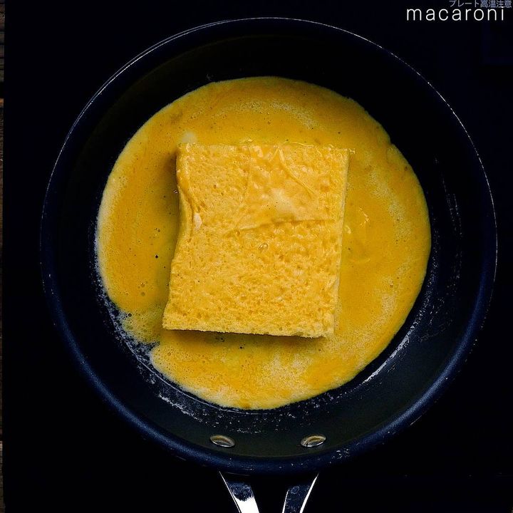 食パンは素早く裏返して卵液を両面に馴染ませてください。