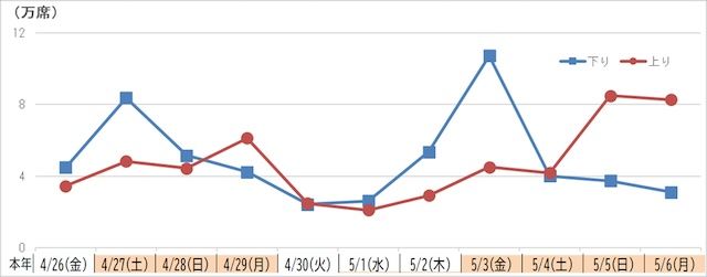 予約のピーク日は下り5月3日(金)、上り5月5日(日)・6日(月)