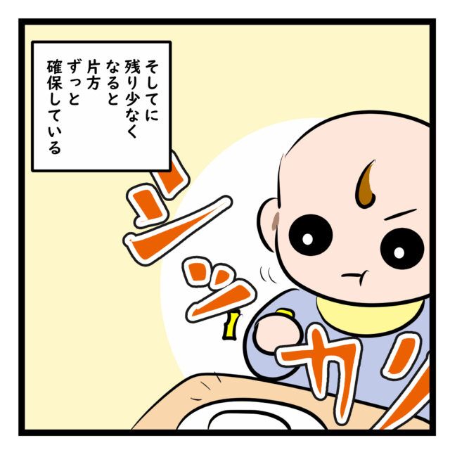 もしもに備えてしっかり確保!?食べ物は両手持ちが基本。片方は絶対に離さない1歳児の危機管理|天野芽衣子の日常マンガ