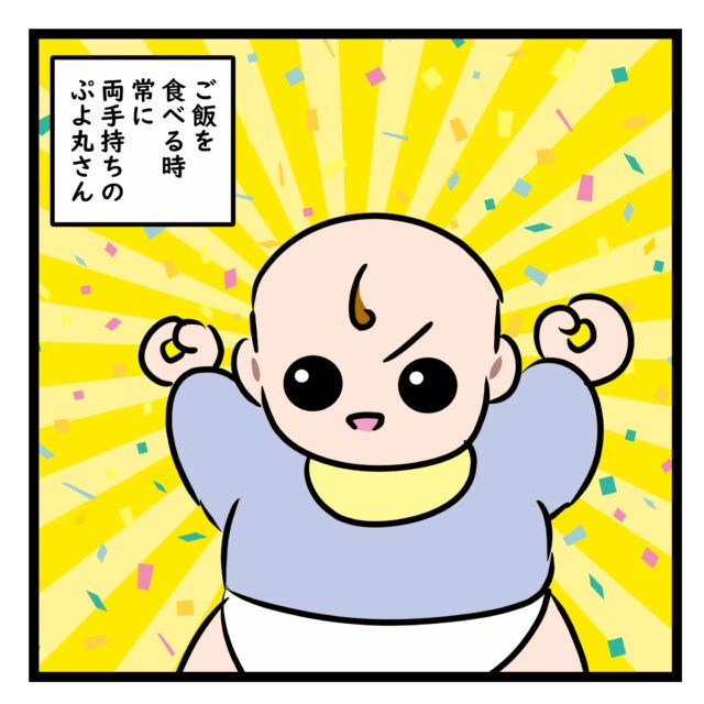 1歳長男ぷよ丸くんのママである天野芽衣子さんから、ご飯のお話です。ご飯を食べるときのぷよ丸くんはいつも両手に食べ物を持つそう。その理由は・・・。