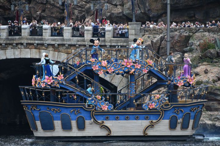 ミッキーマウスやミニーマウスのほかアナとエルサ、ピーターパンとウェンディ、ラプンツェルとフリン・ライダーが1隻の船に乗って登場し、それぞれ映画の名シーンを演じてくれます。公演時間約10~15分と、短いグリーティングですが、内容がとても濃いのでもっと見た感覚になるはず。
