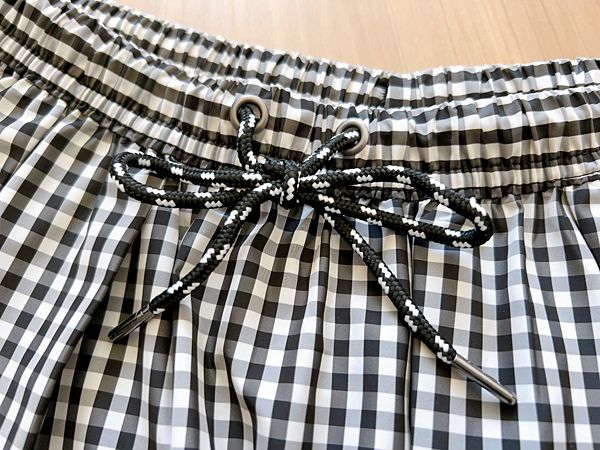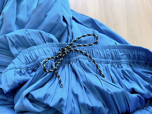 スペックとしては、「撥水ランダムプリーツスカート」とほぼ同じ。総ゴムウエストで調整用の紐付き。ファスナー付きのポケットもあります。