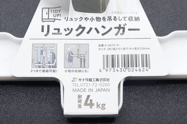 そんな悩みを解決してくれたのが、セリアの収納グッズ売り場で見つけた、ポリスチレン製の『リュックハンガー』という商品です。