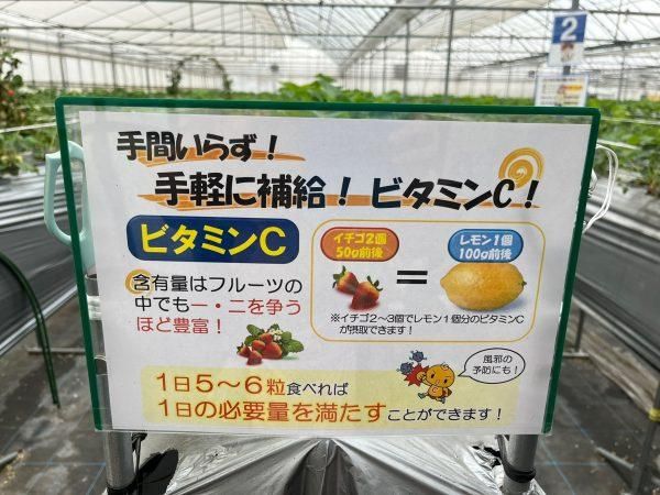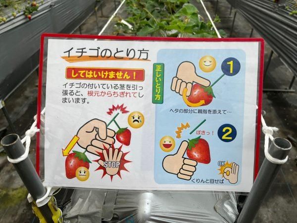 直売は11月中下旬から、いちご狩りは1月中下旬頃から開始されています。 迎えていただいたのは、農業高校教諭の経歴をお持ちの代表松本頼明さん。 もちろん教えることも長けており、ついついお話しに引き込まれていきます。随所にポップがあり、学びながらの楽しいいちご狩りの始まりです。