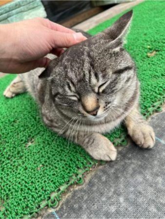 二匹の保護猫ちゃんたちは害獣が入ってこれないようパトロール中。残念ながらチャミちゃんは不在でしたが、松本さんがコタローくんを連れてきてくださいました。