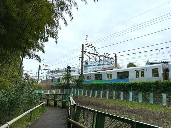 たけのこ公園のうれしいポイントは、すぐ近くを電車が走ること。遊具や原っぱからも見えるのですが、電車大好きなお子さまは、ぜひ竹林の向こう側に行ってみてください。