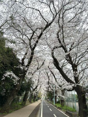 花小金井駅と小平駅の間にあり、狭山・境緑道(多摩湖自転車道)に面している、たけのこ公園。この時季は、公園に行くまでの美しい桜並木も見どころです。