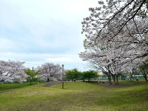 広場だけでなく、遊具の近くにも桜が!季節を感じながら遊べます。