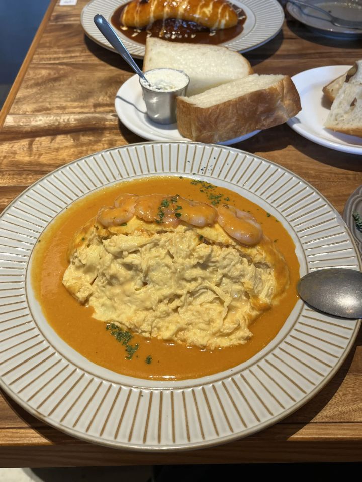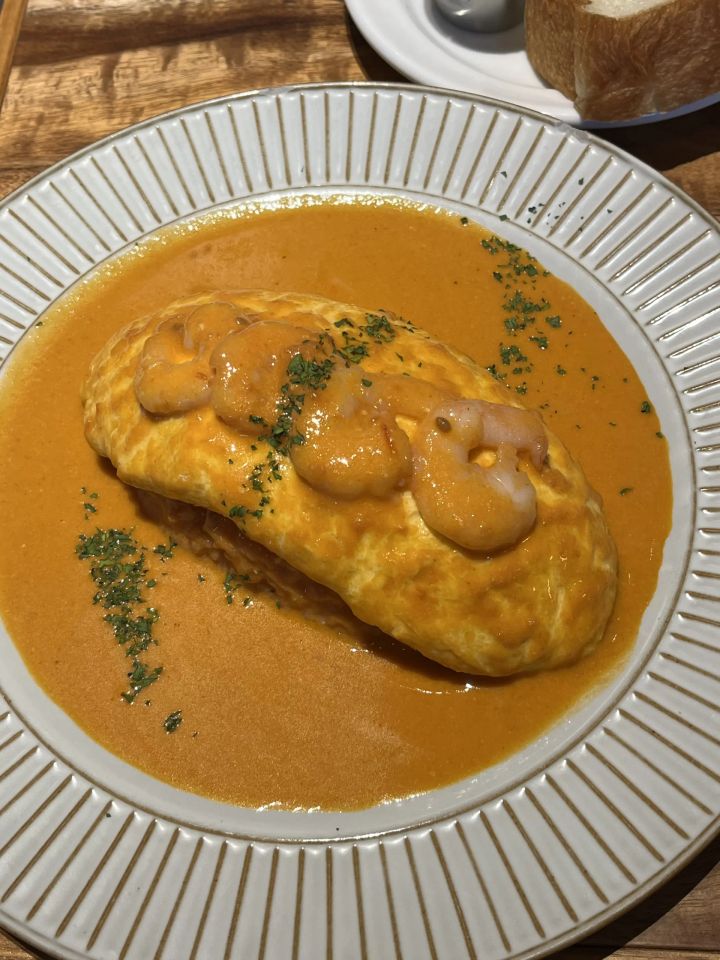 メインはオムライスの中から、友人はデミグラス、私は海老クリームをオーダー。
