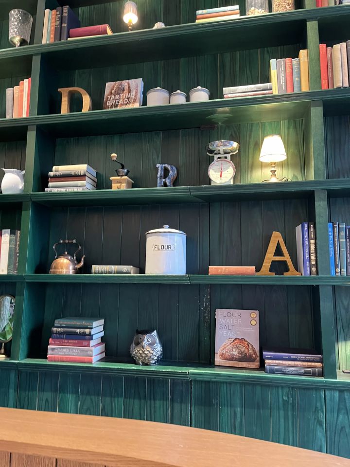 店内の角に天井まで届く大きな書棚があり、置いてある本やライト、小物が素敵だなと見ていたら、なんとそこはお手洗い。白いホーロー缶の置いてある台が扉になっていて、そこを押すとお手洗いになっているんです。お子さん連れの外国人観光客と思われる男性が、「ハリーポッターみたい」と興味深そうに笑っていました。すすきので日中の明るい時間、むしろ朝から開放的な場所でお食事を楽しめて、大満足でした。