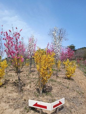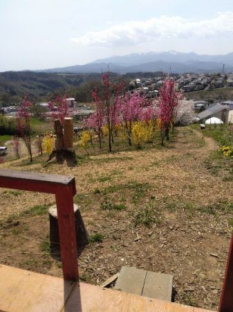 花ももの丘はこの近所にお住まいの長沢様ご夫妻が10年ほど前より植樹。気候の厳しい時もある中、一般に公開するためお手入れされたそう。1年前より見事に成長した花ももを入場無料で公開されています。 ※長沢様のご自宅は近所にありますが直接訪ねることはご迷惑になりますのでお控えください。