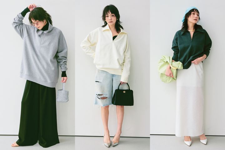 メンズ服を選ぶに当たり、サイズってどう選べばいいの? という疑問は誰しも持ちますよね? ここではおなじみエイトンが昨秋にスタートさせたエイトンステイプルズからハーフジップのスエットを色&サイズ違いで着比べ。スタイリングの方向性によってハマるサイズ感も変わってくるんです。