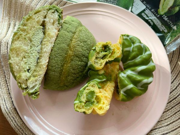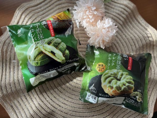 濃い宇治抹茶メロンパン(168円)/ 濃い宇治抹茶のフレンチクルーラー(258円)