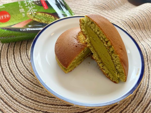 中の餡だけでなく、外側の生地にもしっかり抹茶が練り込まれている抹茶づくしのどら焼き。