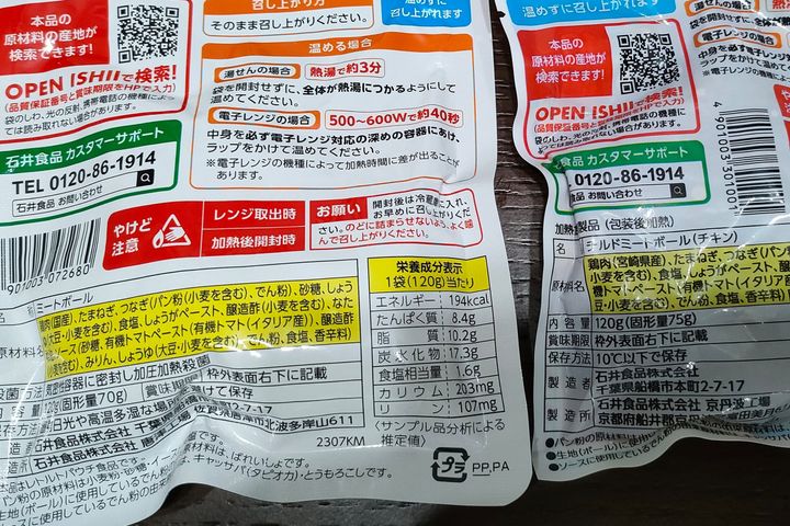 先日スーパーで買い物をしている時に、いつも冷蔵庫に常備している石井食品のミートボールを買おうと思い、手に取り、かごに入れました。