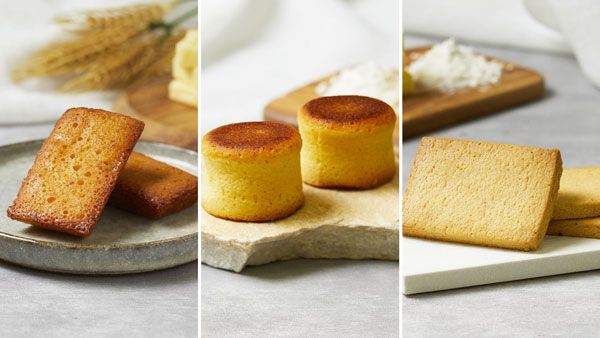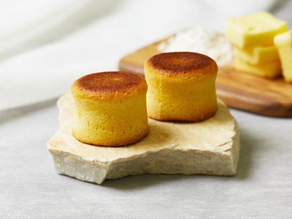 ニュージーランドで放牧され牧草を食べて育った生乳から作る「グラスフェッドバター」使い、食感の異なる2つの生地ガレット・ブルトンヌとフィナンシェにミルクジャムを挟み三層仕立てで焼き上げました。表面のサクッとした歯ざわりと、ミルクジャムがふんわりと膨らみ、生地の真ん中にできる空洞が生み出す食感の軽さも特徴のひとつです。
