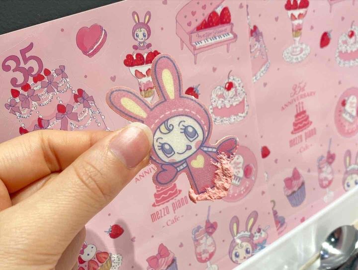 専用サイトからの事前予約を推奨していて、ネット予約には1人660円かかります。予約者には、来店当日に35周年記念カフェオリジナルステッカーの特典が♡