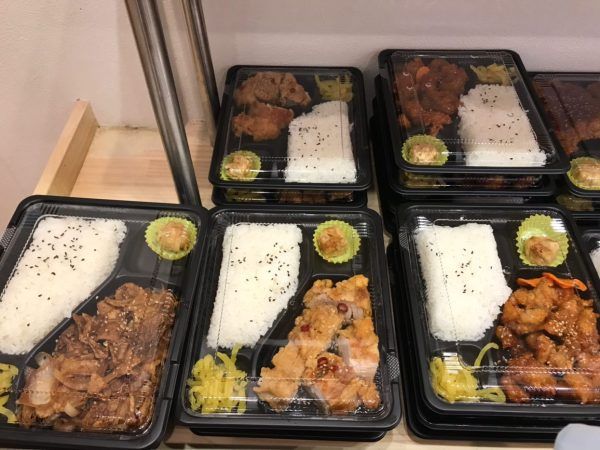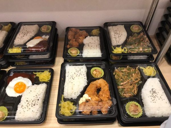 ハンバーグ弁当・チキンカツ弁当・焼肉弁当・青椒肉絲弁当・唐揚げ弁当等様々な種類の弁当が売っていました。お弁当はすべて390円です!!