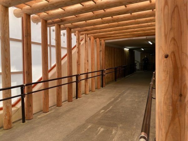 ホームへ続くコンコースは、鳥居が連なっているかのよう〜ちょっと神秘的です。
