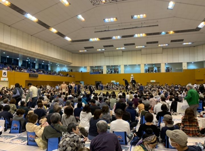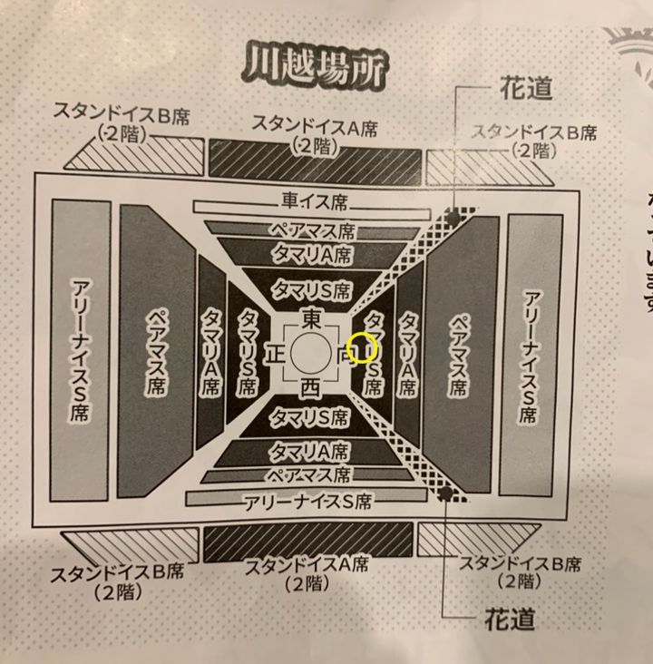 座席は、土俵近くの座布団の席から椅子の席車椅子席